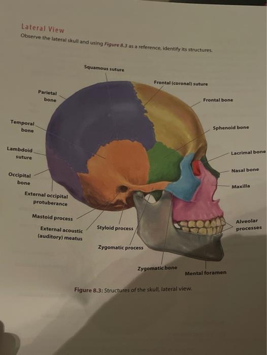 Label the skull - lateral view Diagram | Quizlet Label the skull - lateral view Learn Test Match Created by Lisa-Jane_Coxshall TEACHER Terms in this set (21) frontal bone ... sphenoid bone ... ethmoid bone ... lacrimal bone ... nasal bone ... zygomatic bone ... maxilla ... alveolar margins ... mandible ... mental foramen ... mandibular ramus ... styloid process ... mastoid process ...